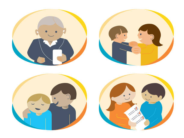 Icons of social support, charity and care issues including for family, aged care, child care.
